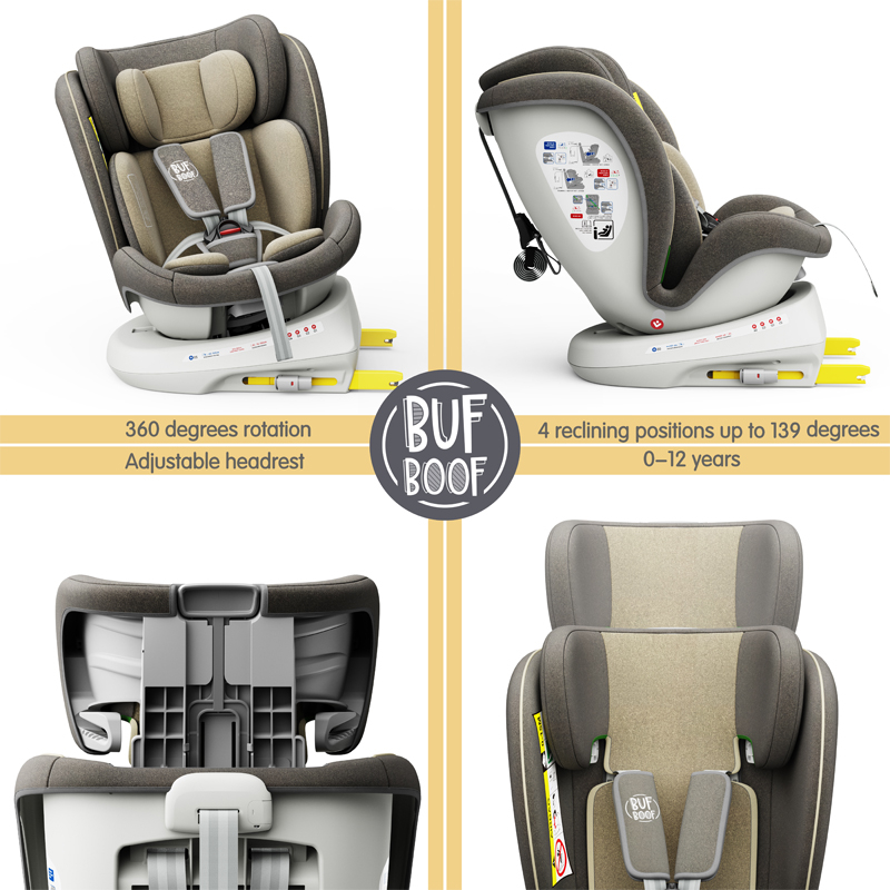 BUF BOOF TWT Plus iSize Autósülés, 360 °-os, 0-36 kg-os forgatással, 40-150 cm, LightBrown