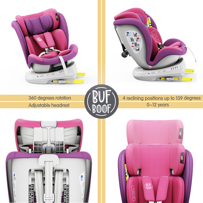 BUF BOOF TWT Plus iSize Autósülés, 360 °-os, 0-36 kg-os forgatással, 40-150 cm, UnicornPink